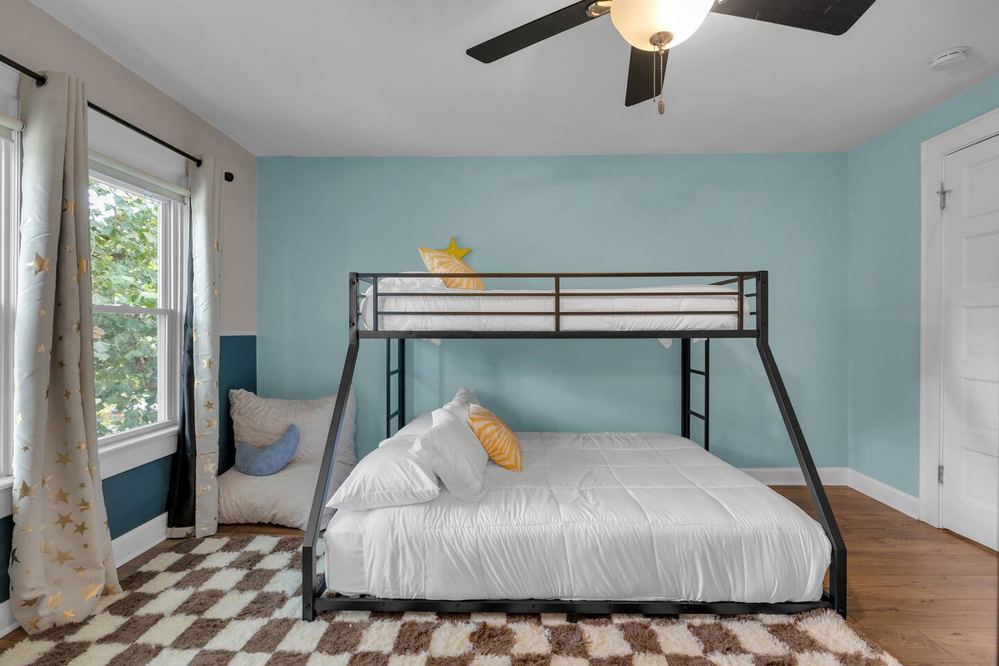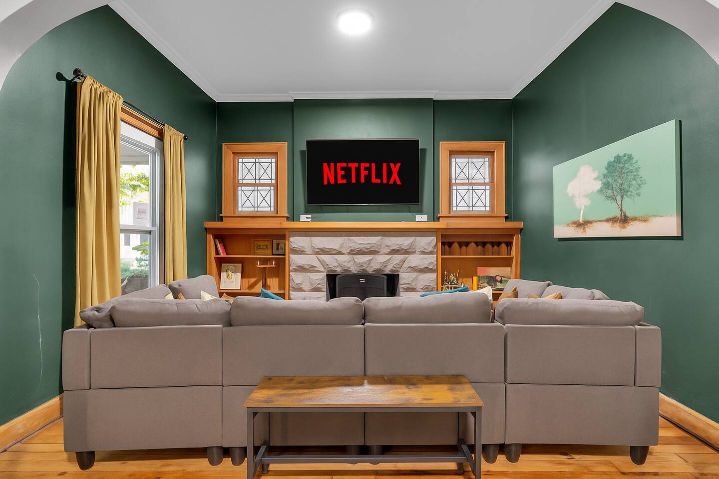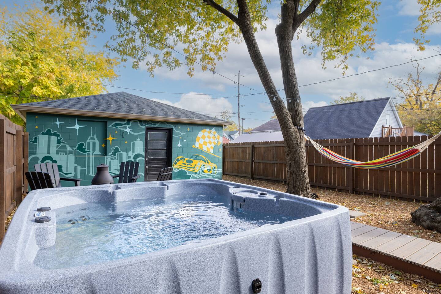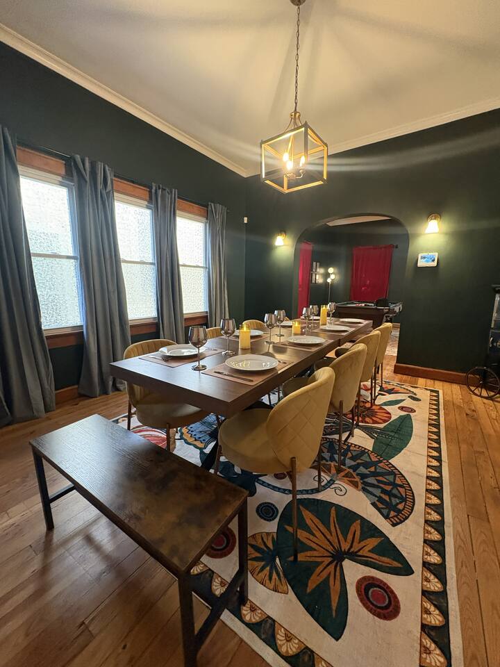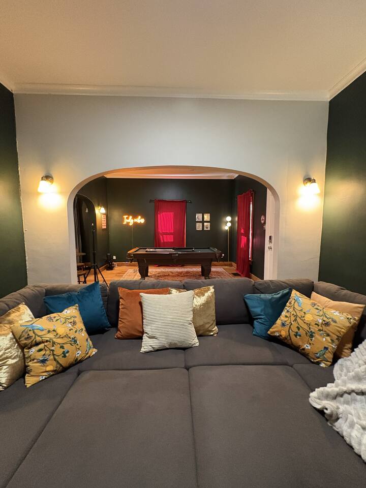 Designed for Groups. Built for Experiences. This 2,200 sq/ft Old Southside showpiece was curated for unforgettable stays—whether you’re gathering with family, friends, or traveling as a group for events, conventions, or race weekends. Spacious Bedrooms Four uniquely styled bedrooms with 10 comfortable beds give everyone room to unwind, recharge, and truly settle in—no bunkhouse vibes here. Ultimate Entertainment Two dedicated movie rooms set the stage for unforgettable nights. One features a projector-style cinema experience, perfect for movie marathons, big games, or next-level gaming sessions. Gourmet Kitchen A fully equipped, host-worthy kitchen with a full suite of appliances and an espresso machine makes mornings easy and group meals effortless. Family-Friendly Surprises Younger guests will be delighted by a hidden secret playhouse tucked inside a closet, plus children’s books and toys that make this home feel magical for all ages. Work & Wellness Ready Fast fiber Wi-Fi, a dedicated workspace, and exercise gear let you balance productivity, movement, and downtime—without skipping a beat. 🌿 Your Private Outdoor Oasis: - Step outside into your own private backyard retreat—built for connection, laughter, and late nights under the stars. - Melt into the bubbling hot tub after a long day - Share stories and drinks around the cozy fire pit - Fire up the BBQ grill for relaxed alfresco dinners - Lounge, play, and unwind in a space designed for real together time - Crib available upon request Whether it’s a lively group evening or a slow morning coffee outside, this backyard sets the mood.