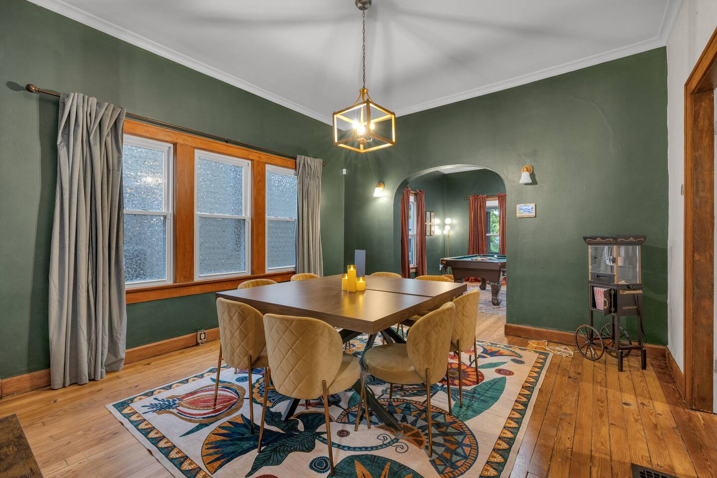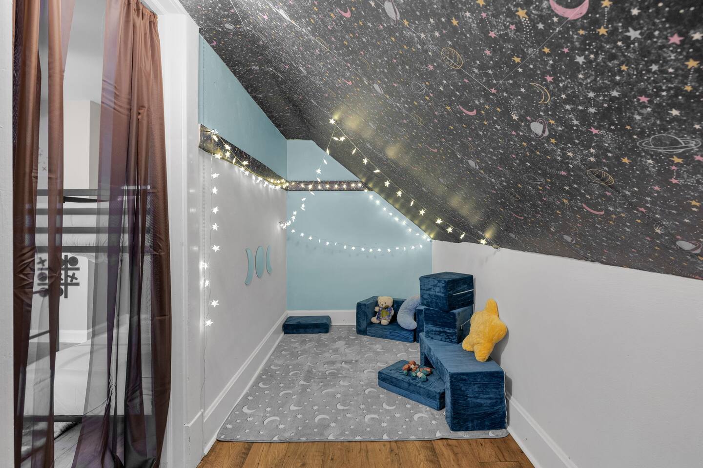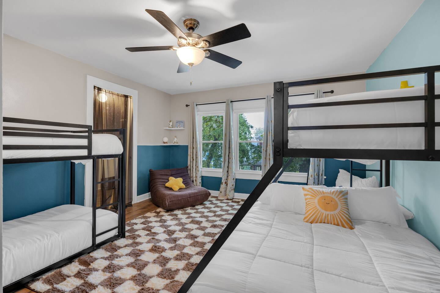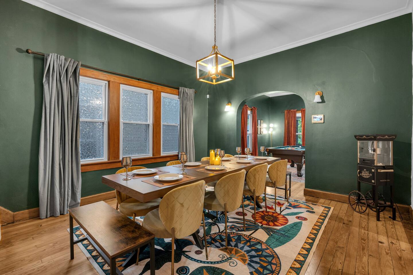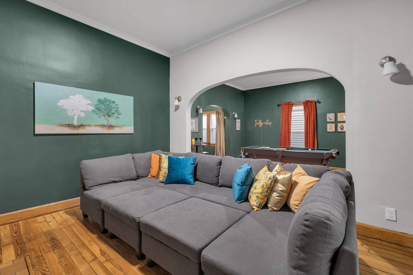 Designed for Groups. Built for Experiences. This 2,200 sq/ft Old Southside showpiece was curated for unforgettable stays—whether you’re gathering with family, friends, or traveling as a group for events, conventions, or race weekends. Spacious Bedrooms Four uniquely styled bedrooms with 10 comfortable beds give everyone room to unwind, recharge, and truly settle in—no bunkhouse vibes here. Ultimate Entertainment Two dedicated movie rooms set the stage for unforgettable nights. One features a projector-style cinema experience, perfect for movie marathons, big games, or next-level gaming sessions. Gourmet Kitchen A fully equipped, host-worthy kitchen with a full suite of appliances and an espresso machine makes mornings easy and group meals effortless. Family-Friendly Surprises Younger guests will be delighted by a hidden secret playhouse tucked inside a closet, plus children’s books and toys that make this home feel magical for all ages. Work & Wellness Ready Fast fiber Wi-Fi, a dedicated workspace, and exercise gear let you balance productivity, movement, and downtime—without skipping a beat. 🌿 Your Private Outdoor Oasis: - Step outside into your own private backyard retreat—built for connection, laughter, and late nights under the stars. - Melt into the bubbling hot tub after a long day - Share stories and drinks around the cozy fire pit - Fire up the BBQ grill for relaxed alfresco dinners - Lounge, play, and unwind in a space designed for real together time - Crib available upon request Whether it’s a lively group evening or a slow morning coffee outside, this backyard sets the mood.